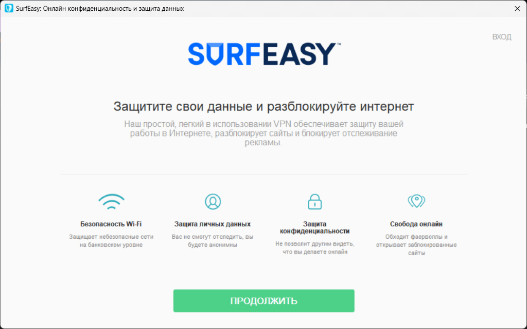 Для установки SurfEasy на свой компьютер, перейдите на официальный сайт surfeasy.com. Если ресурс не определил ваше устройство, вы можете выбрать правильную платформу в нижнем меню. Скачайте приложение по ссылке и оно будет загружено в папку на вашем компьютере.